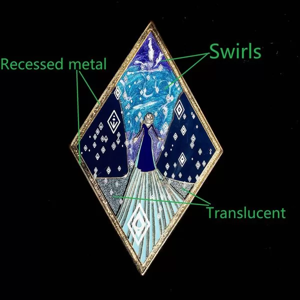 Pearl Swirls|Half Raised Metal|Hard Enamel Pins Sampel pictture for hard enamel pins with pearl+swirls effect, and translucent enamel with half raised metal bottom.