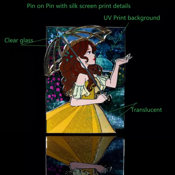 Hard Enamel+3D Frame+Print Details Pins Sample picture for hard enamel with Gold 3D frame, print detials an trancluent enamel.