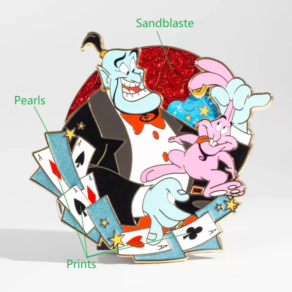 Pearls+Sandblase+Prints Hard Enamel Pins Sample picture for Hard Enamel Pins with pearls, sandblase trancluent enamel and half raised metal effects